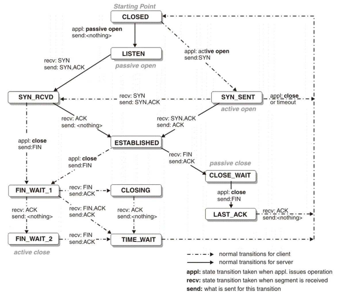 - Start and Teardown: TCP three-way handshake and connection teardown via FIN